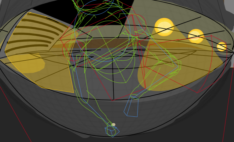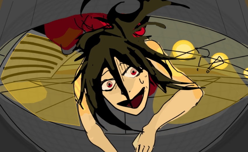 I tried drawing a person dropping out of a vent in fisheye perspective