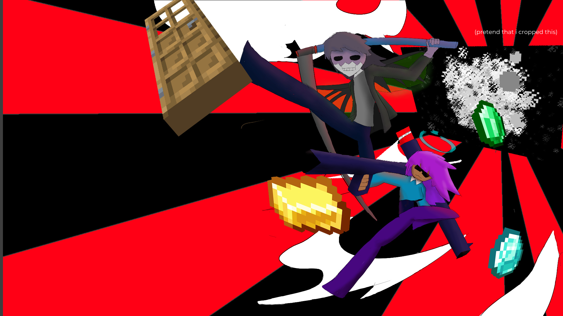 Recent drawing of my and a friends Minecraft character. The same pose/scene as the jackpot overdose art