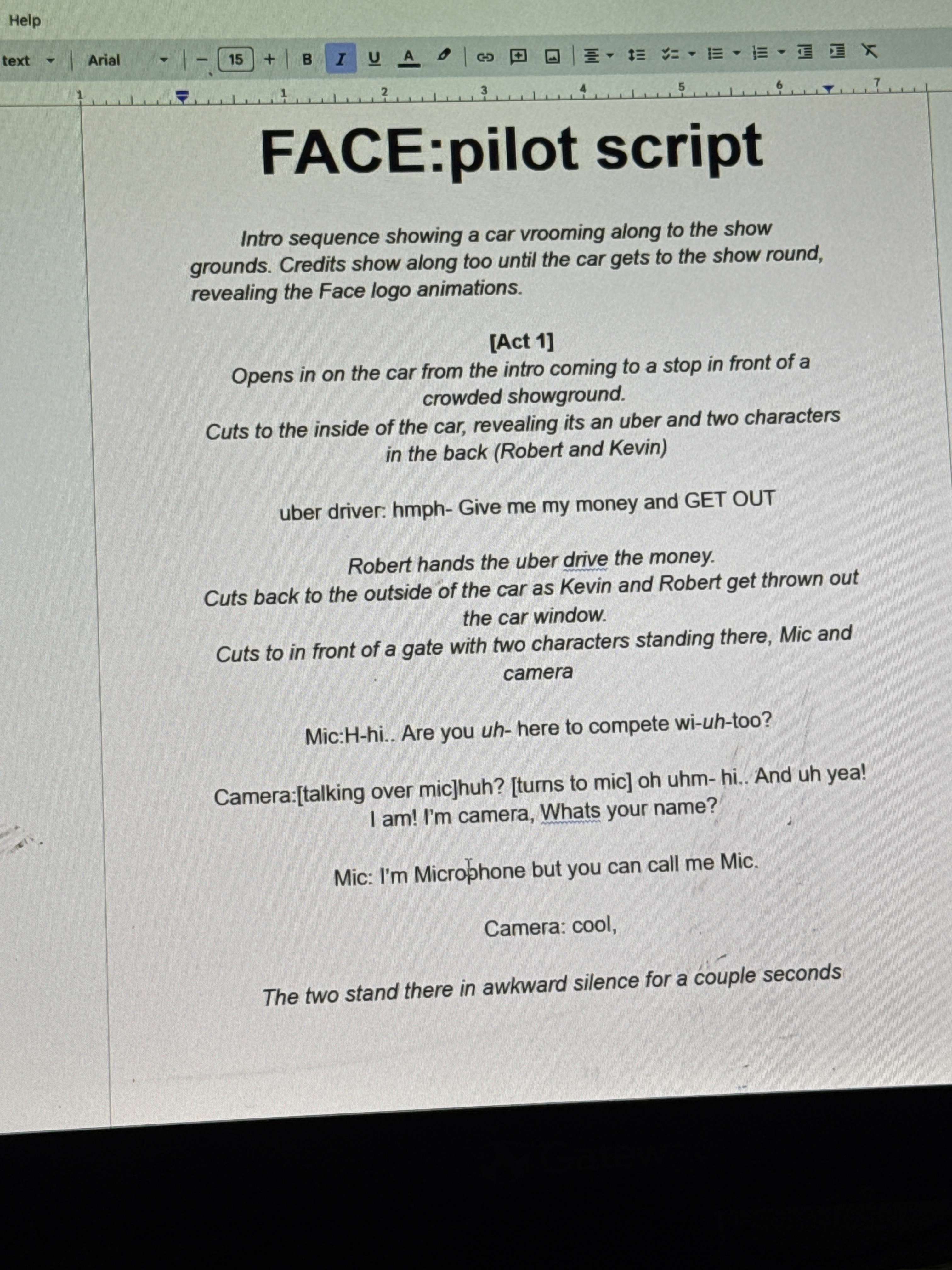 I just finished the first page of my script for my object show pilot