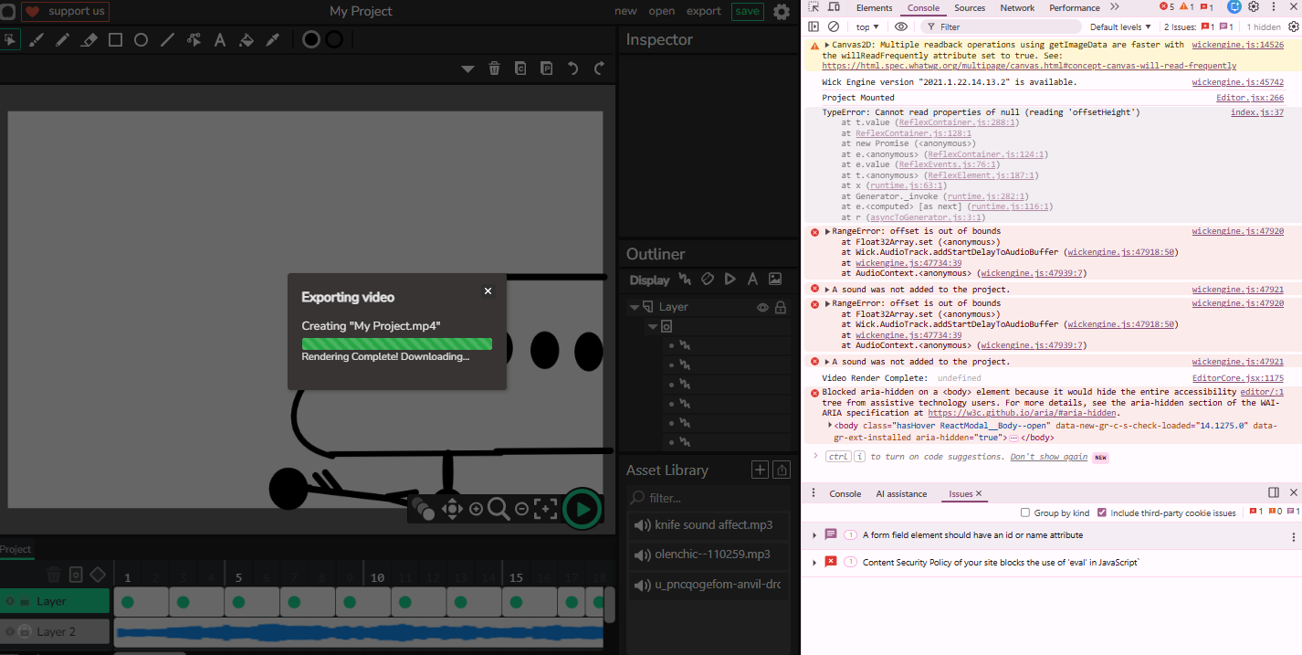 Student created an animation with audio but when he exports it using the video option the audio gets cut off at the end.
