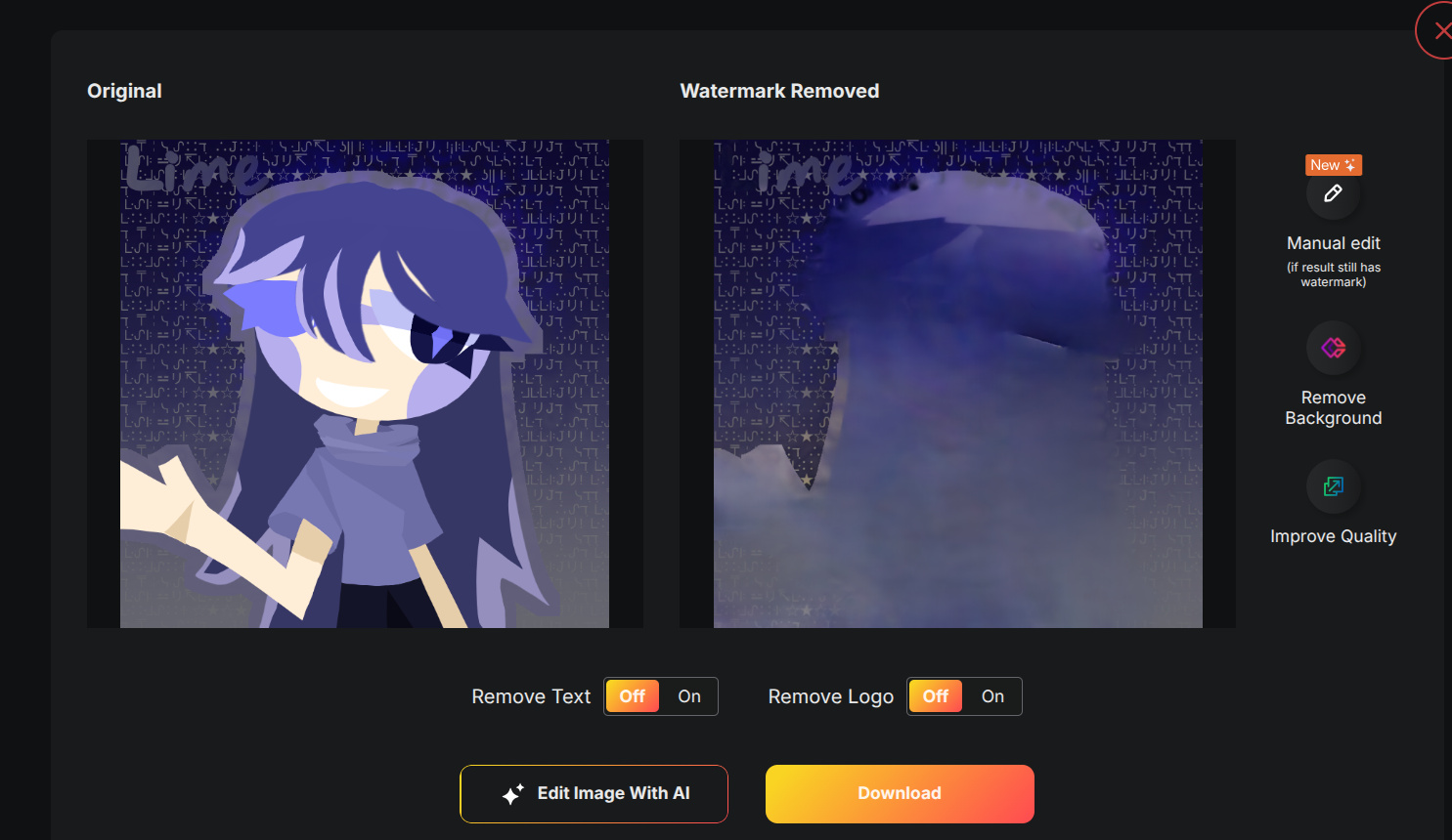 So I was putting my drawings into watermark removers just in case someone is able to steal my art but instead of removing the watermark, it removed the picture.